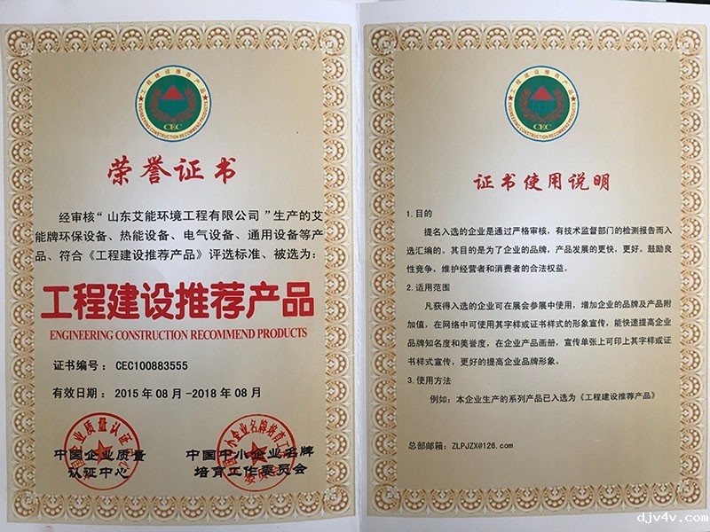 工程建设推荐产品证书